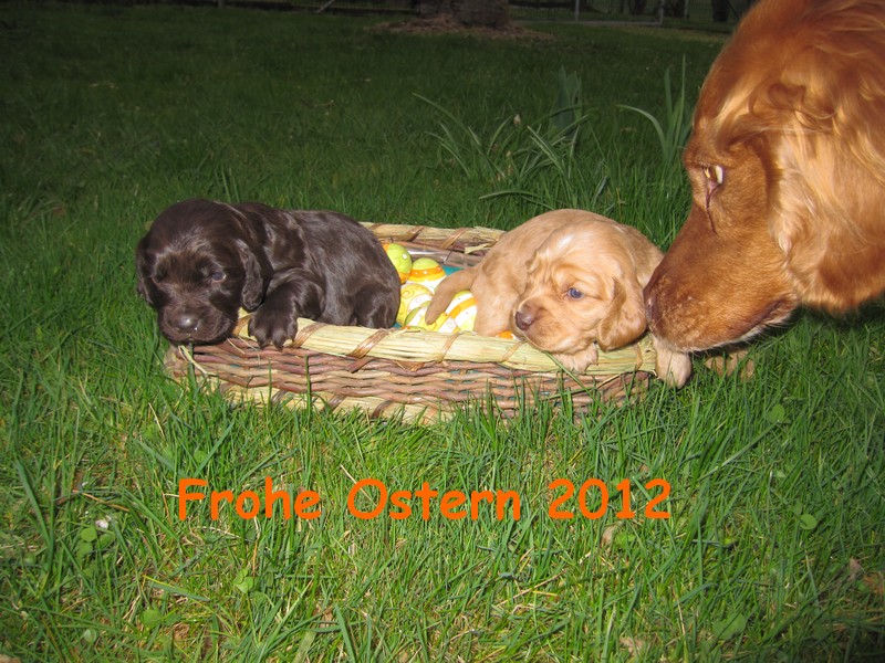 Unser Y-Wurf mit 7 Welpen (5 rote, davon 2 Rüden und 2 braune Hündinnen) wurde am 19. März 2012 geboren.