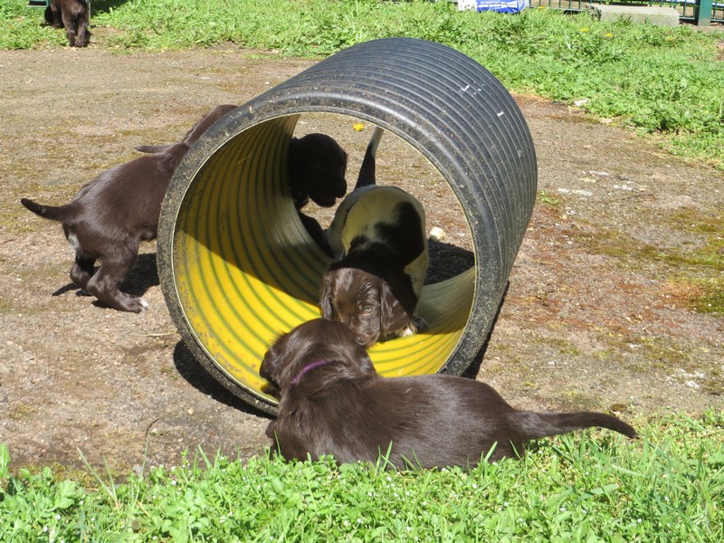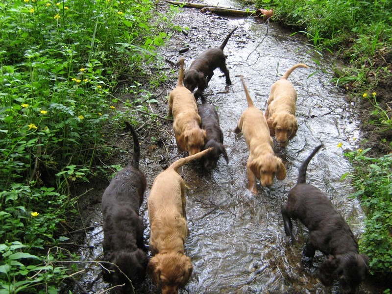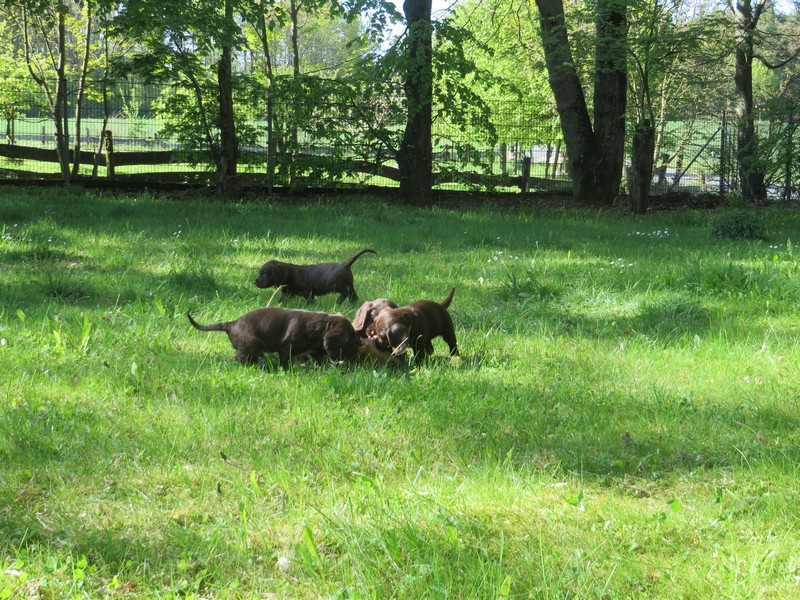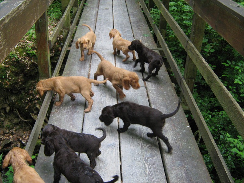 Natürlich hatten die Welpen auch reichlich Gelegenheit, den Hof und Garten zu erkunden oder im Stall und in der Scheune zu spielen, Rinder und Schweine kennenzulernen oder wir unternahmen Ausflüge ins Revier.