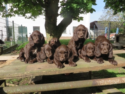 4 Rüden (3 rot und 1 braun) sowie 3 braune Hündinnen